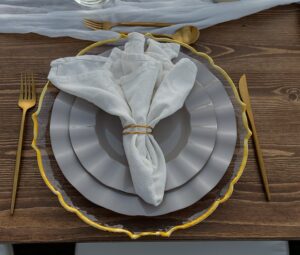 Charger plates add instant sophistication to any Scottsdale or Phoenix event, creating a layered and luxurious tabletop design that elevates the entire guest experience. Our curated collection features metallic finishes, textured designs, modern silhouettes, and timeless classic styles that suit everything from corporate galas to intimate private celebrations. Each charger provides a beautiful frame for your dinnerware, enhances your linen selections, and brings cohesion to your overall event décor. Additionally, chargers add depth, dimension, and visual warmth to every table, allowing your event design to feel intentional and polished. Whether you’re hosting a charity dinner, luxury hangar event, black-tie reception, or branded corporate gathering, our charger plates deliver an elevated finishing touch that transforms your tables into a true focal point. Let your guests experience a setting where every detail reflects sophistication and style..